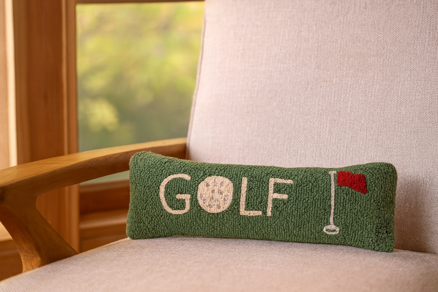 Transform your space into a golfer's paradise with this premium Golf 8" x 24" Hooked Wool Pillow from Chandler 4 Corners.