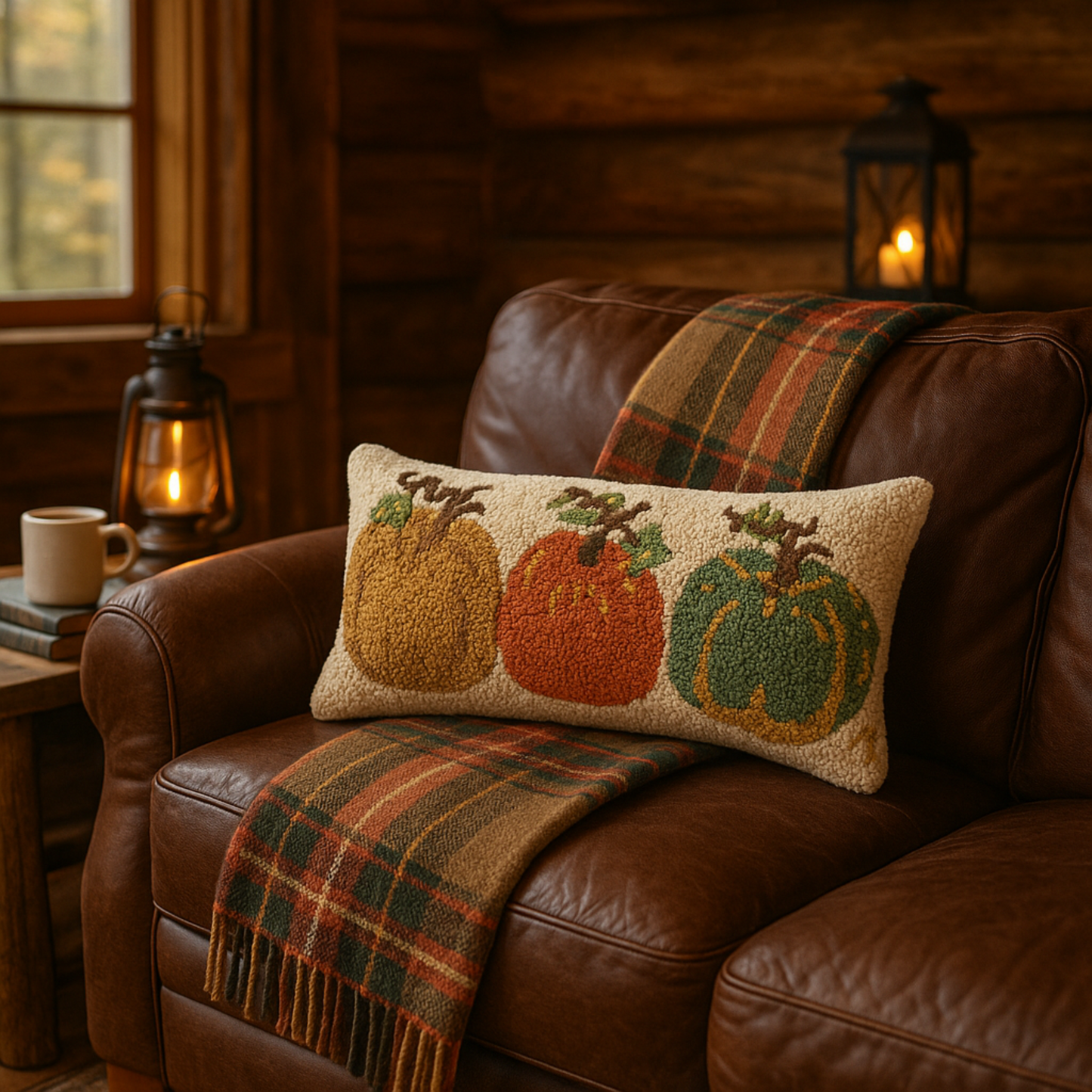 Three Pumpkin Patch - Fall Décor Hand Hooked Pillow