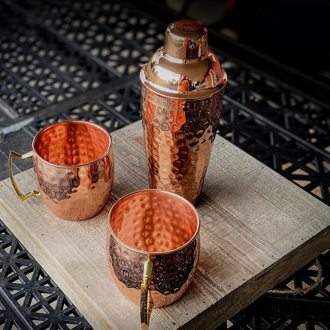 The most classic way to present a traditional, frosty Moscow Mule at home, lakeside home or hunting or fishing lodge. And to really add to your evening with good friends, see our Copper Hammered Shaker. You may enjoy our Copper Hammered Coasters.