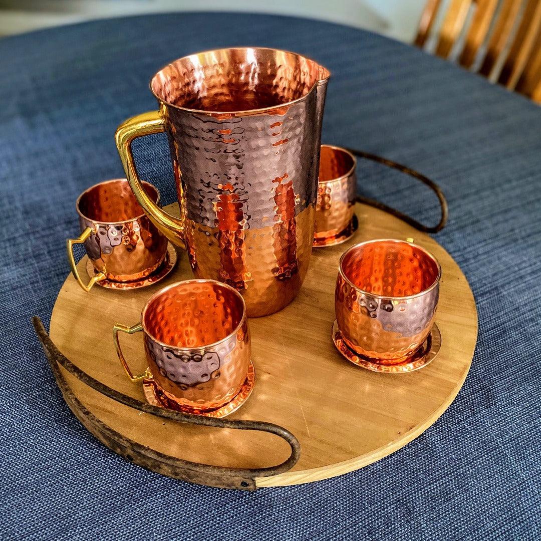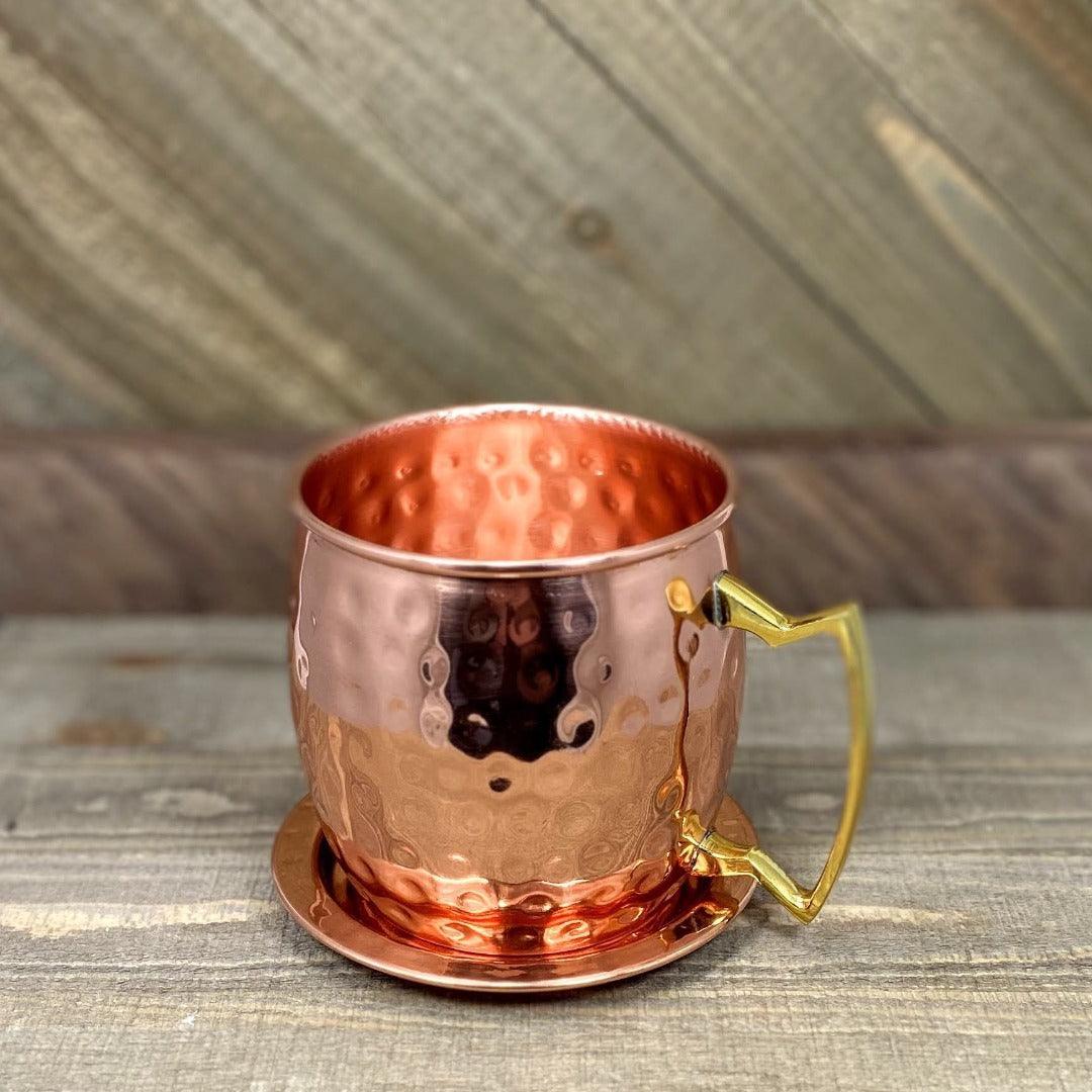 This classic mug features a sleek, hammered by hand finish and an elegant, shaped brass handle. Rustic. Gorgeous. 100% Pure Copper.