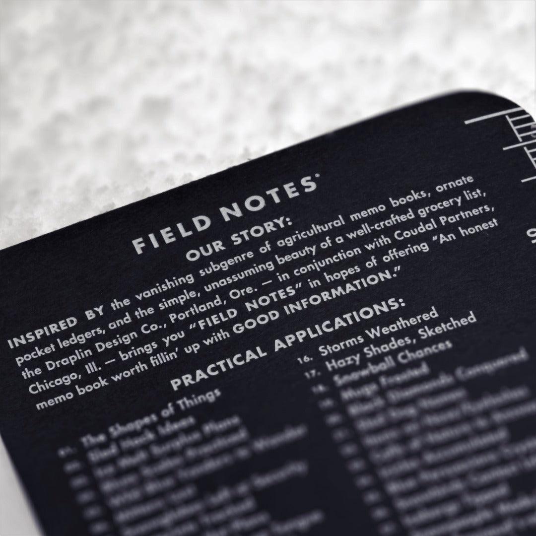 While creating this edition, it occurred to us that, like snowflakes, every Field Notes Memo Book is different. This time, that’s literally true. But what makes each book truly unique are the notes we write to ourselves on its 48 pages.