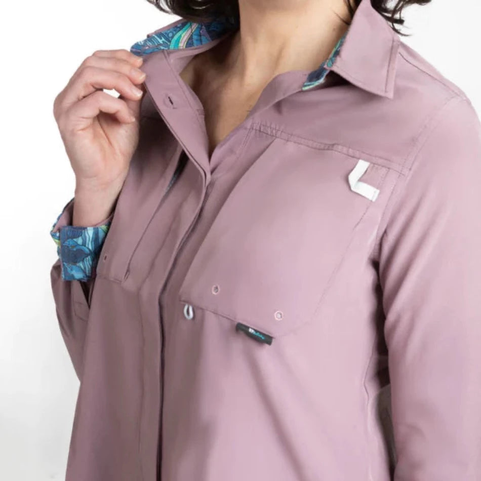 Regular price $60.00 USDThe HaliBorealis Tunic Fishing Shirt boasts a classic style design ideal for both aquatic activities and everyday wear. Featuring a quick-drying composition and UPF 50+ protection from the sun, this tunic-style shirt also includes a sunglass loop, a microfiber cleaning cloth, a mesh-vented back panel, and patch pockets with a button closure. Additionally, the collar and cuffs of the shirt display a unique HaliBorealis pattern.