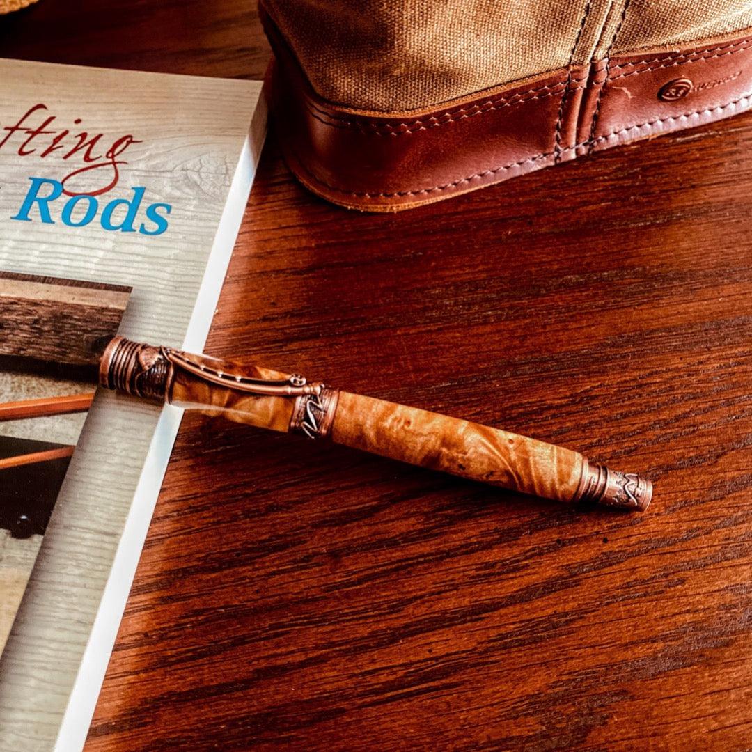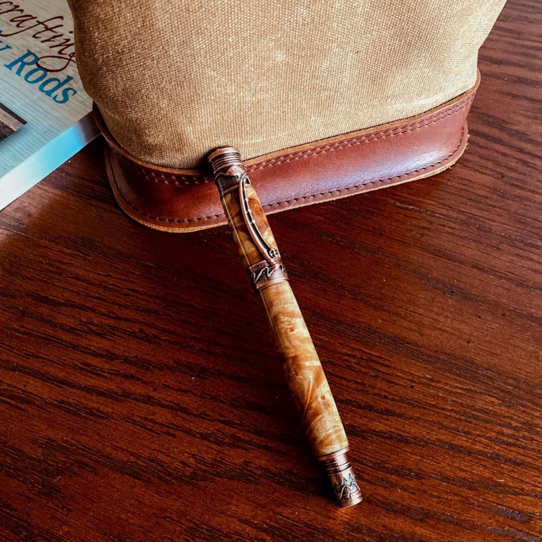 The Fish On! Fly Fish Pen takes your passion of fly fishing back to your office or home, even the lodge. The pen, like the popular ballpoint twist features a fly rod clip which aligns with the fly line reeling in a fish. The tip features the quiet scene of a day on the river.