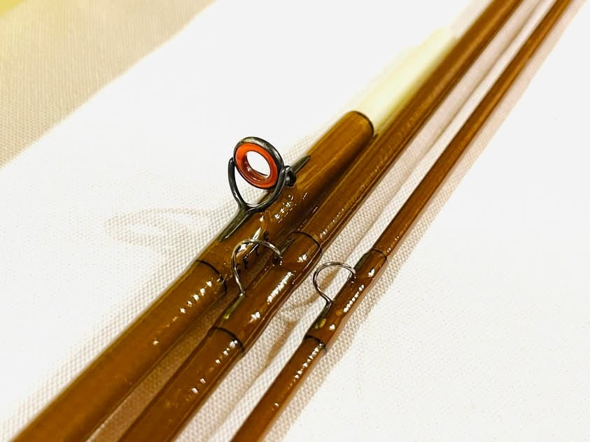 Experience the perfect blend of tradition and innovation with our Kabuto 7' 3" 3wt 3pc Brown / Flamed Bamboo fly rod. Crafted with precision, this rod features a unique combination of flamed stack bamboo and fiberglass tube, providing exceptional strength and sensitivity. The red agate stripping guide adds a touch of elegance while enhancing the rod's performance. Whether you're a seasoned angler or a novice enthusiast, this rod promises an unforgettable fishing experience.
