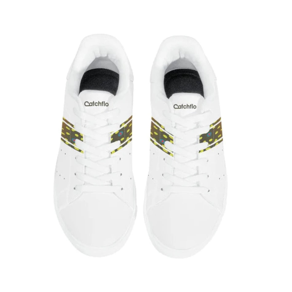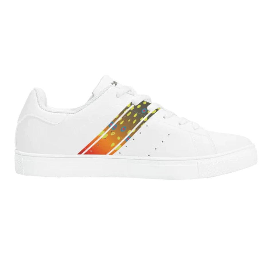 Men’s Brookietown Racer Leather Sneaker Meet the unique Men's Brookietown Racer Leather Sneaker from Catchflo. Perfect for all your adventures, this made-to-order footwear features comfortable padded collars, removable insoles, slip-resistant, non-marking soles, and machine-washable vegan leather. Best of all, it has a conversation-starting fishy design and reduces product and material waste. Get the most unique footwear now!