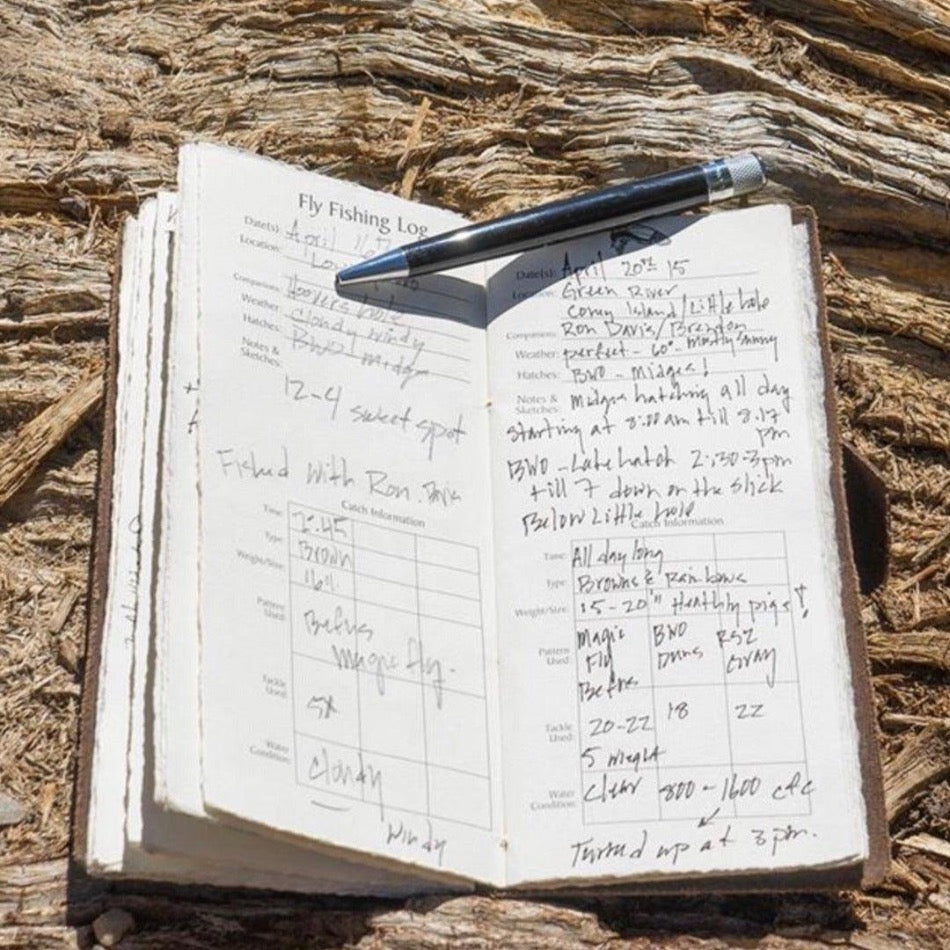 Our Leather Fly Fishing Logbook is an ideal way to preserve memories of your fishing adventures. Crafted from top-grain cowhide, the logbook includes 96 printed 3.25" x 7" pages, each featuring a rough-cut cream-colored paper. Secured with a leather buckle closure and hand-sewn binding, this logbook is sure to last for years to come.