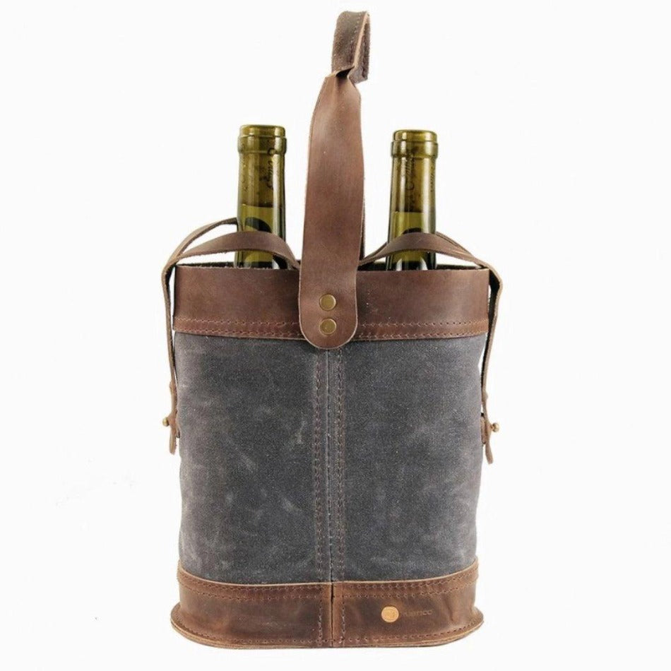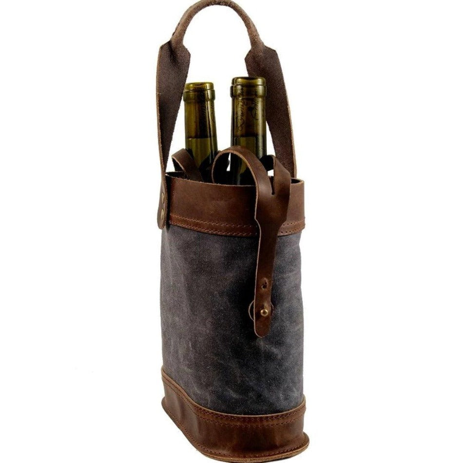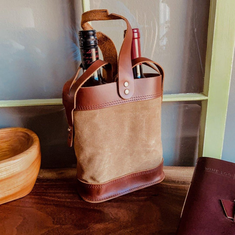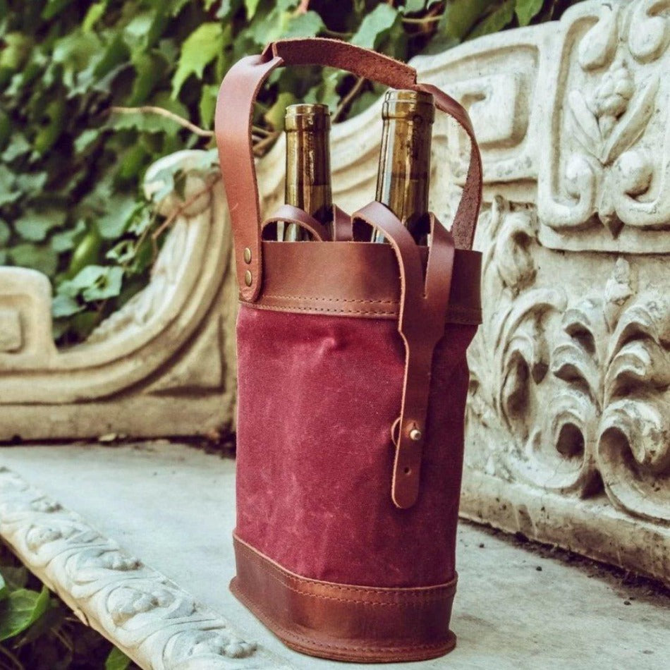 Handcrafted with a strong, comfortable carrying handle along with straps to secure each bottle in place. The combination of top-grain leather and waxed canvas makes for an appealing and durable tote that will look great in hand.