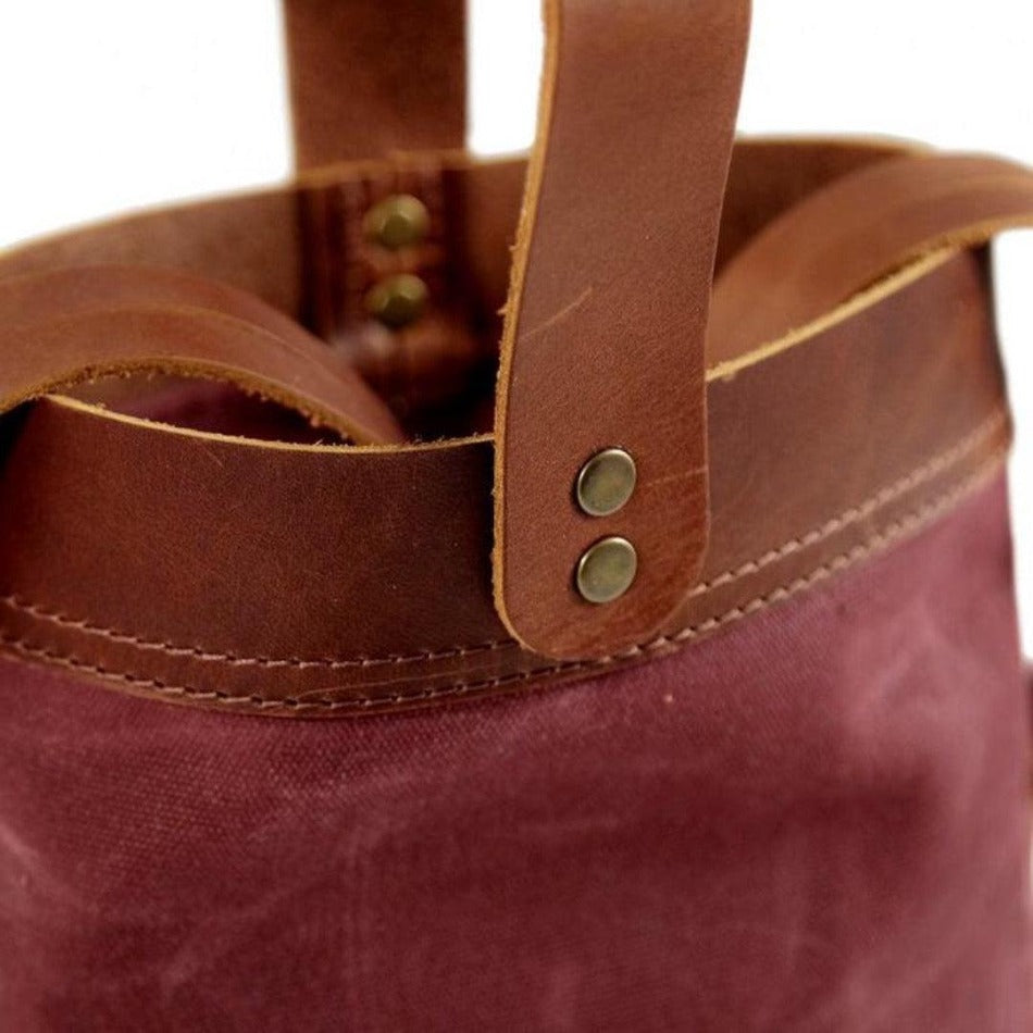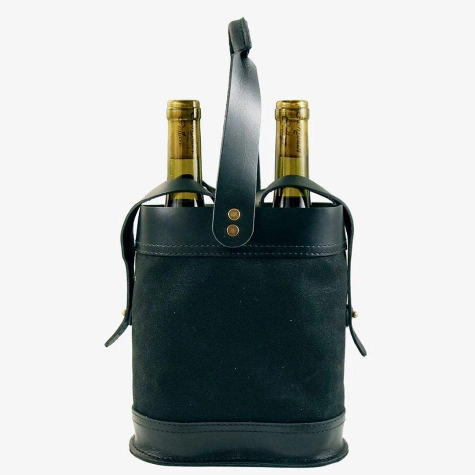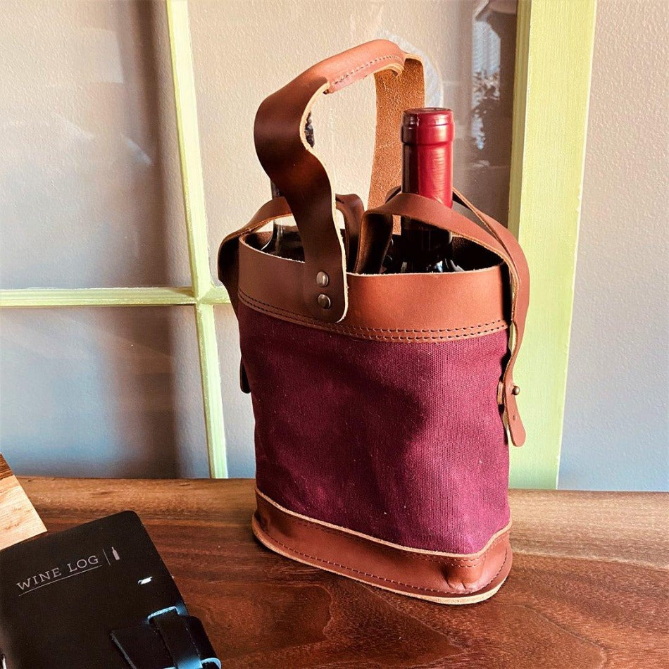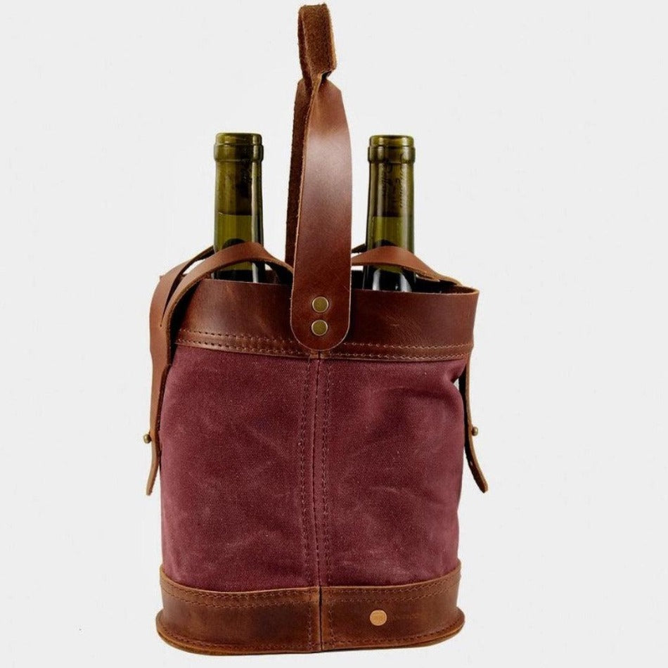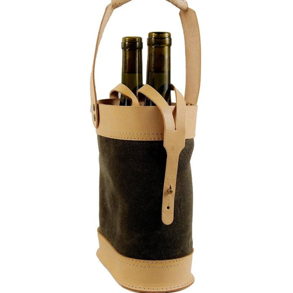 Handcrafted with a strong, comfortable carrying handle along with straps to secure each bottle in place. The combination of top-grain leather and waxed canvas makes for an appealing and durable tote that will look great in hand.