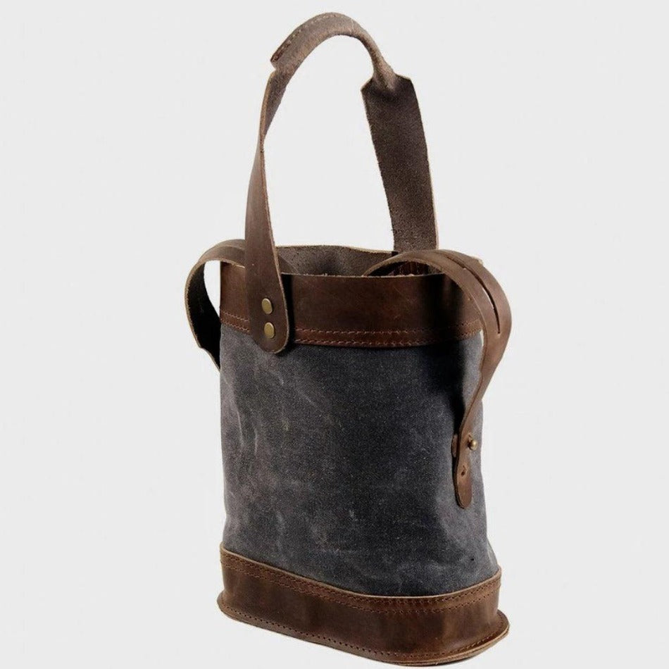 - Made with top-grain cowhide and waxed canvas