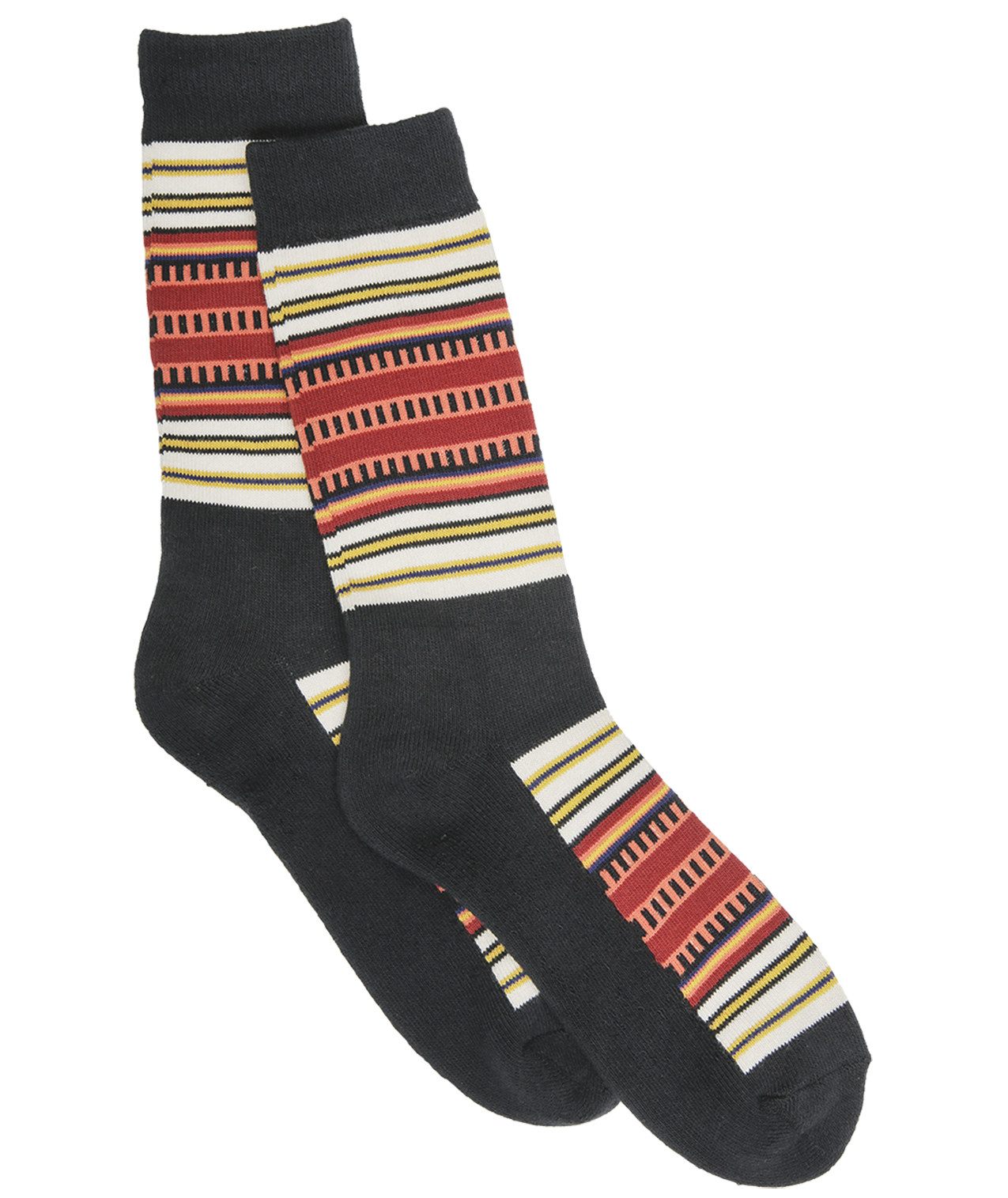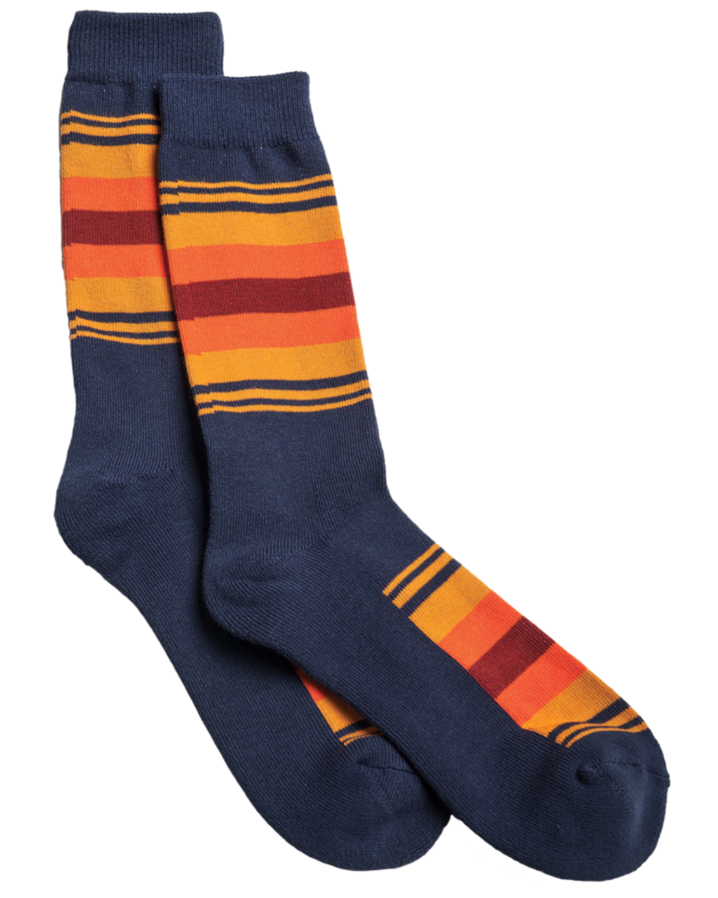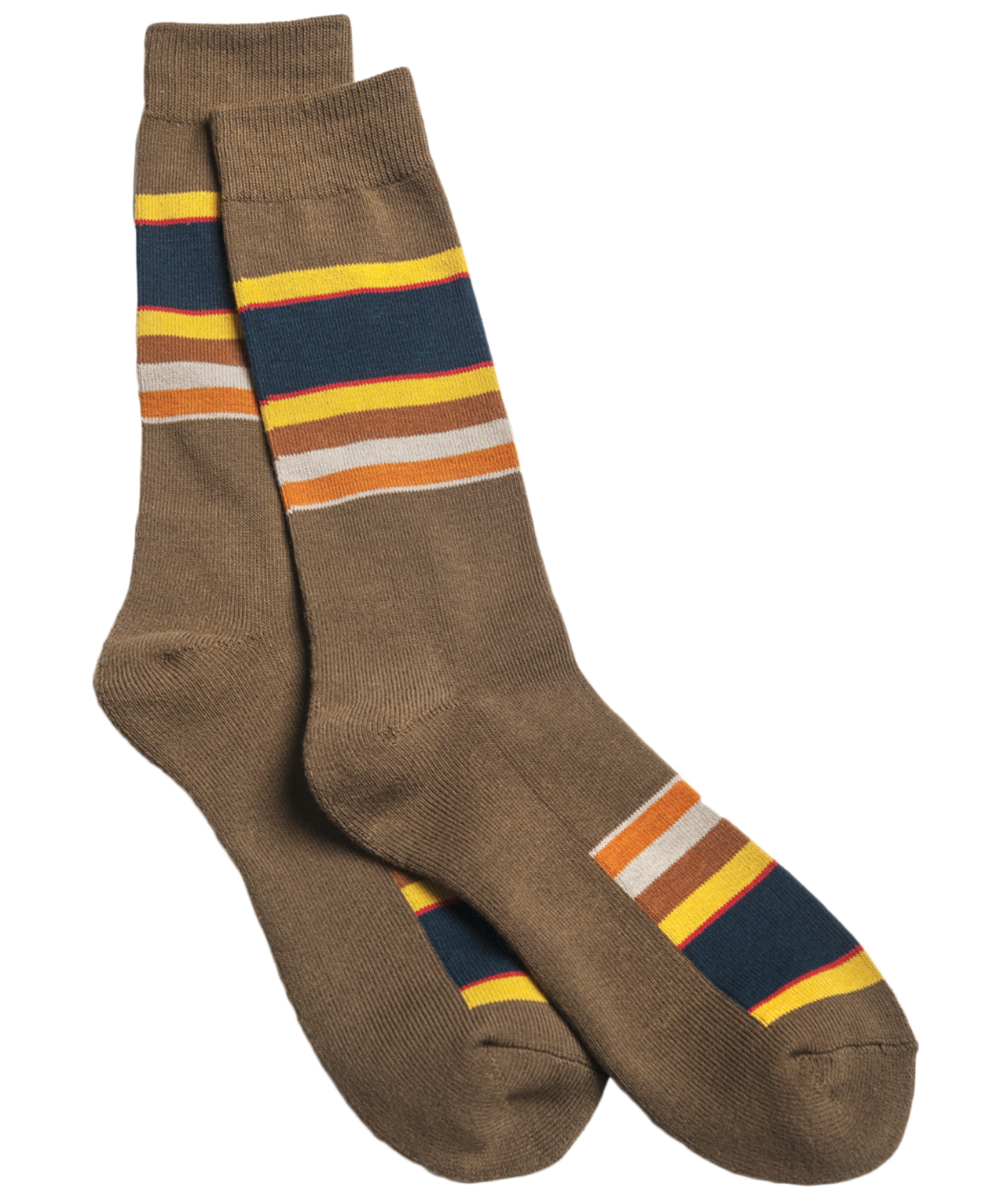 Experience the perfect blend of comfort and style with our BRIDGER SCOUT STRIPE CREW socks. Made from high-quality cotton, these socks offer a soft and breathable feel that keeps your feet comfortable all day long. The exclusive Pendleton design adds a touch of elegance to any outfit, while the reinforced heel and toe ensure durability. Whether you're dressing up for a casual outing or lounging at home, these socks are a must-have addition to your sock drawer.