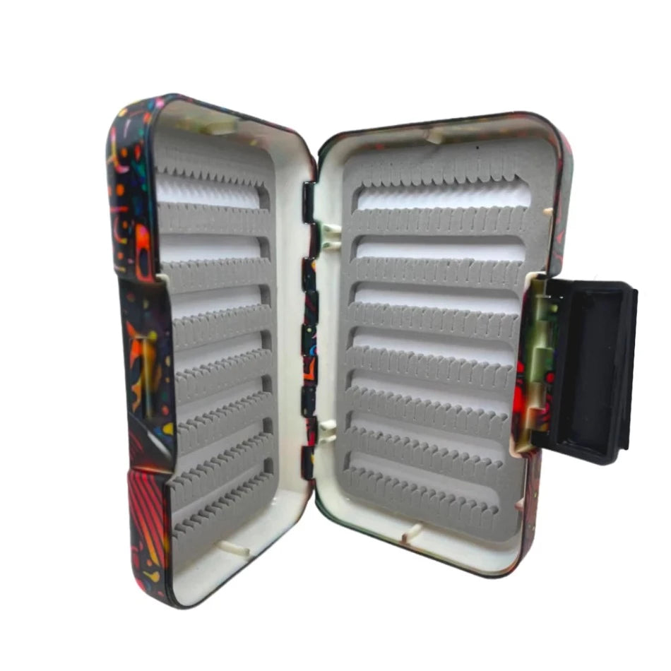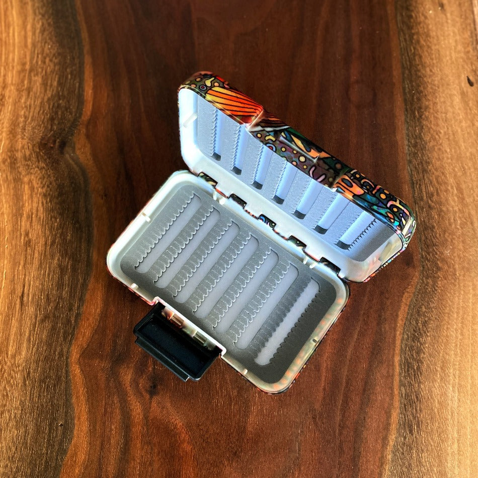 Boost your Fly-Fishing experience with the Fishe Poly Fly Box, featuring the Brookie Design, and add a touch of vibrancy!