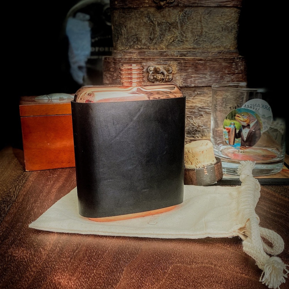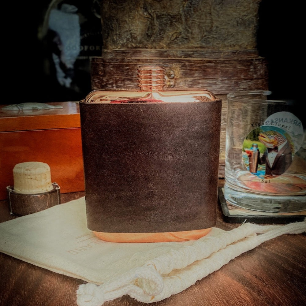 Artisan crafted from high-quality full-grain leather, reinforced with durable Tiger Thread, and outfitted with a stainless-steel flask; these flasks are beautiful.